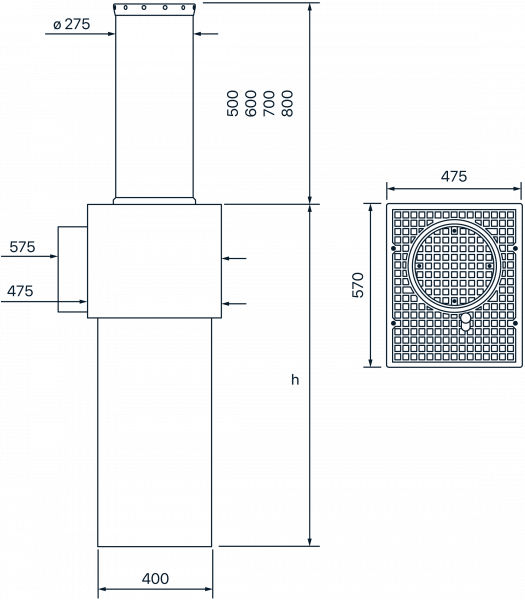 Fully retractable, heavy duty, automatic bollard consisting of an oil-hydraulic motor-pump unit incorporated inside the main structure and an oil-hydraulic actuator inside the moving cylinder. Suitable to meet residential, commercial and industrial applications and urban applications. IP 67. Height from ground level can be 500, 600, 700 or 800 mm. Scratch-proof S355J2H steel moving cylinder, thickness 12 mm and ø 275 mm, cataphoresis treated and polyester powder coated (an AISI 304 brushed stainless steel cover sleeve available). Cylinder head made of aluminium fitted with rubber edge and 12 amber-colour integrated LED lights. Cataphoresis treated aluminium cover plate. Head and cover plate are slip-proof and tread resistant. Moving cylinder fitted with an approved retro-reflecting, high intensity micro-prismatic adhesive film (h 80 mm). Hot-dip galvanized steel pit. Access to the hydraulic release device for emergency manual lowering of the bollard by a special spanner with a triangular socket. Impact resistance 60.000 J [HRC: 90.000 J], breakout resistance 450.000 J [HRC: 550.000 J], static load max 1.500 kg (bollard in raised position), max 20.000 kg (lowered). Working temperature -40 ÷ +80 °C. Supply voltage 230 Vac ± 10%, 50 Hz. Absorbed power 1.100 W. Rising time ~ 2,80 s [h 500 mm from ground level], ~ 3,40 s [h 600 mm from ground level], ~ 4,0 s [h 700 mm from ground level], ~ 4,50 s [h 800 mm from ground level]. Intensive use 2.000 cycles/a day
