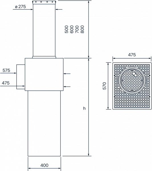 Scratch-proof, cataphoresis treated and polyester powder coated steel cylinder. An AISI 304 brushed 12/10 thick stainless steel cover sleeve can be factory fitted on to it, on request. Cylinder head fitted with a rubber edge cushioning violent impacts. The bollard has an approved, retro-reflecting, high intensity, micro-prismatic adhesive film to improve its visibility in dark conditions. Ground pit made of steel and hot dip galvanized, slip-proof tread resistant cover plate.